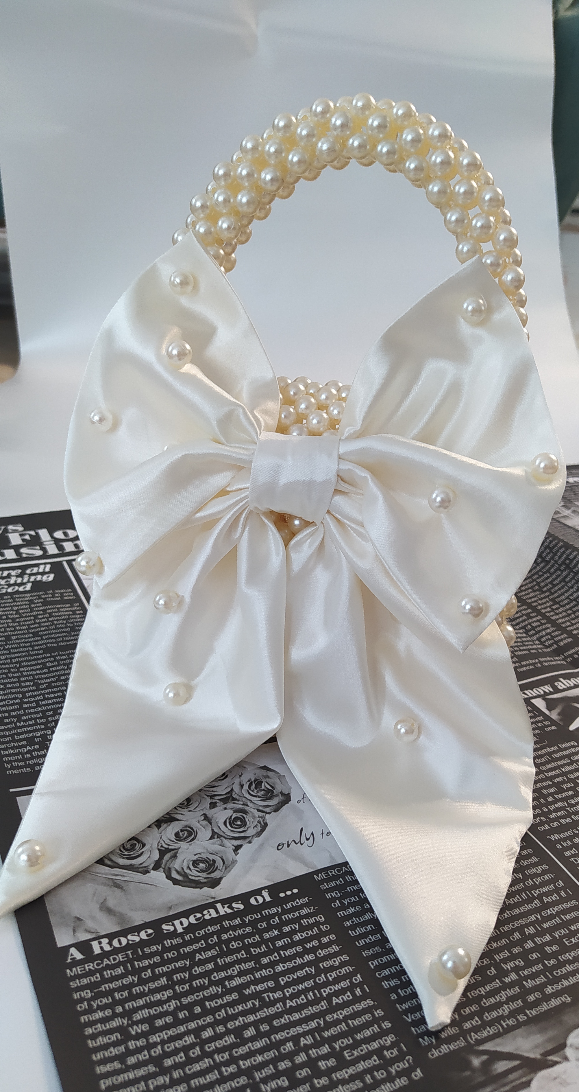 L کیف مرواریدی پاپیون دار بزرگ، مختص استفاده روزمره. موبایل های متوسط جا می شود. بافته شده با مروارید های ایرانی در رنگبندی که می پسندید. با مهره های وارداتی ۱۷۰ بیشتر هست
