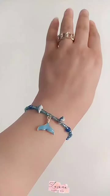 دستبند منجوق ژاپنی میوکی طرح دم وال با تم ساحلی آبی آسمانی