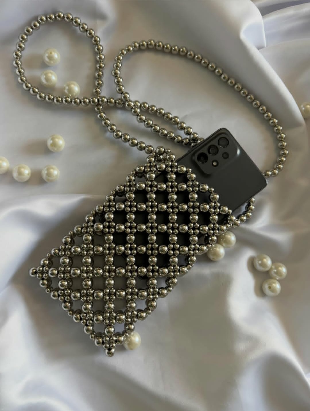 کیف موبایل با مروارید های وارداتی در رنگ‌بندی متنوع دارای بند بلند بدون در، بدون آستری. طول بند و رنگ مهره به سلیقه شما اجرا خواهد شد Instagram@zarana_bag . zarana-accessories.ir