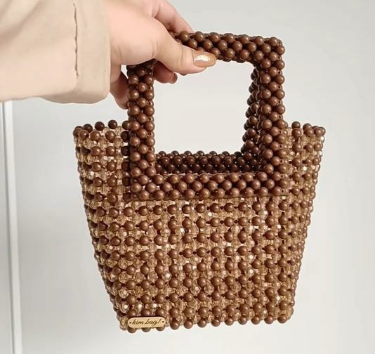 کیف دسته مربعی ترکیبی مروارید و کریستال ایرانی در ابعادی که موبایل داخل آن جا می شود