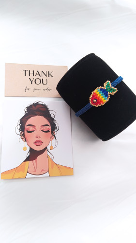 دستبند منجوقی ژاپنی میوکی طرح ماهی با اتصالات میکرو مکرومه نخی